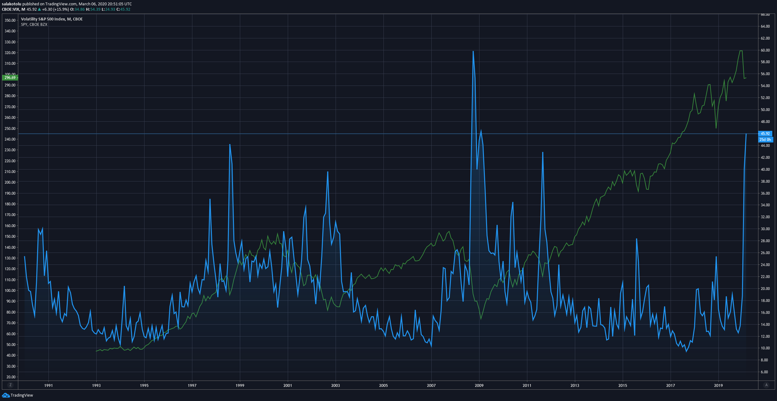 As of Friday, the volatility index, also known as the fear index is accelerating towards 2008 levels. The market hasn't crashed yet, and though sustained levels of uncertainty can make that happen, it is unlikely. But that's just speculation, no one really knows. What I do know is that volatility is very high, and the virus is the root cause (there are other factors at play, but this is the main one).